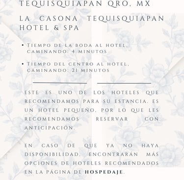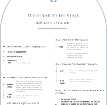 Vuelos, hospedaje y todos los detalles para acompañarnos en este gran día.